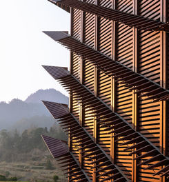 [Text from the architect] We planned and designed the Chinese Tujia Pan-Museum, aiming to integrate 9 Tujia villages along the Longtan River, making the farming, life, and agricultural landscape of Tujia farmers become a living display of the museum. Currently, the tourist center, the tower, and the bridge are built.